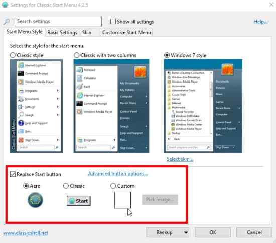 How to change start button in Windows 10 using Classic Shell: