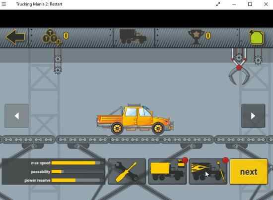 Click the next button and you will be taken to the customization screen, where you can change things about your truck, or even buy a bigger truck if you have that many coins.