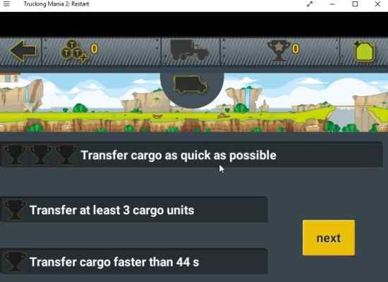 Windows 10 Driving Game App to Drive a Truck With Cargo Over Obstacles