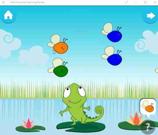 Here you have a hungry lizard named Lizzy. You have to feed Lizzy flies of different colors. The color fly which is displayed in the bottom right corner is the one Lizzy is supposed to eat. Like in the above screenshot the fly displayed at the bottom right corner is of Orange color. So you have to feed Lizzy Orange colored flies which are flying above by clicking on them. This helps kids with color recognition and visual perception.