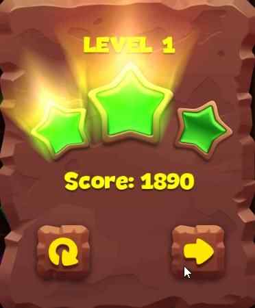 The level up screen will look like the screen above with your total score and the stars you earned. Click the next arrow button to go to the next level.