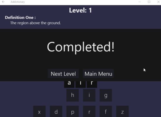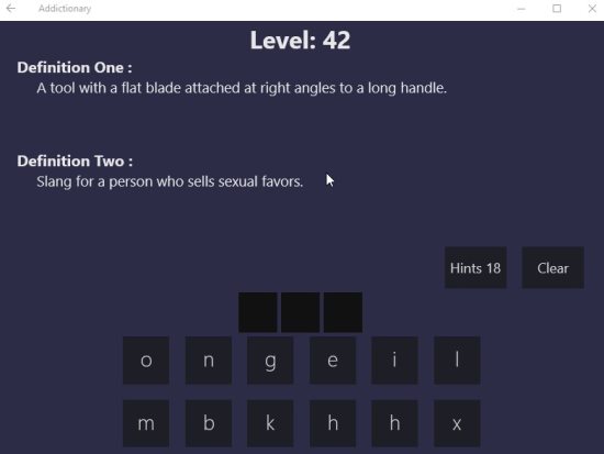Addictionary is a Windows 10 word game app where you are given two definitions which represent the same word and you have to find that word from the given letters. If you enjoy playing word games then this game will definitely be to your liking. In the process of playing this game your will also be able to learn some new words.