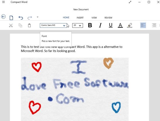 Compact Word is a free Windows 10 Word reader and editor app which can prove to be a good alternative to Microsoft Word. The app lets you open already existing MS Word files to read and edit as well. You can create a new document as well and save it in Word document format. You have a lot of functions which you find in a Word document.