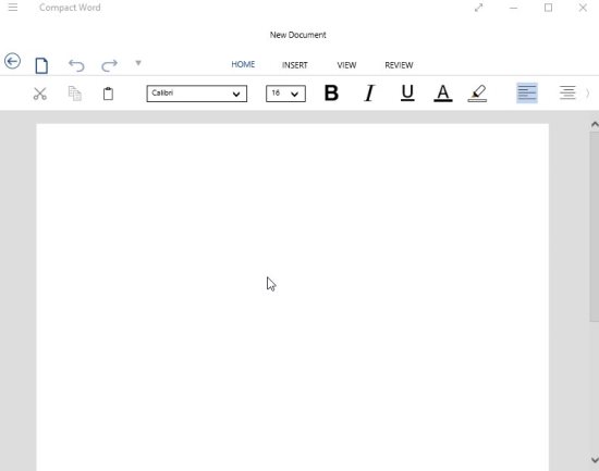 You can download Compact Word from the Windows 10 store or from the link given at the end of this article. The app opens up to a blank interface, as shown in the screenshot below.