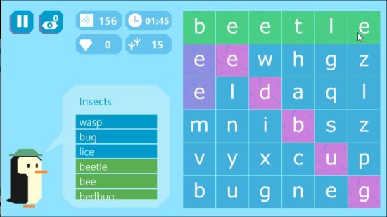 On the right side is the word grid in which you have to find words. To the left of the grid are the words that you have to find in the grid. The words are given in blue color and as you start finding them they keep on turning green.