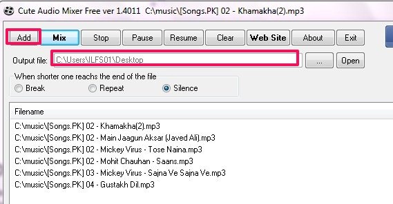 Cute Audio Mixer is a very a quick and efficient application with simple tools. You can click the add button given on top and import multiple files on the interface of the app at once. The software supports popular file formats like MP3, SWF, AVi, MP4 and the list goes on. After you upload the files, you can select the output location for the mixed file the software will generate.