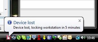 - The icon turns red, when the device disappears. Windows will get locked after a few minutes of that. To avoid locking, right-click the icon in system tray and choose “Abort workstation lock”
