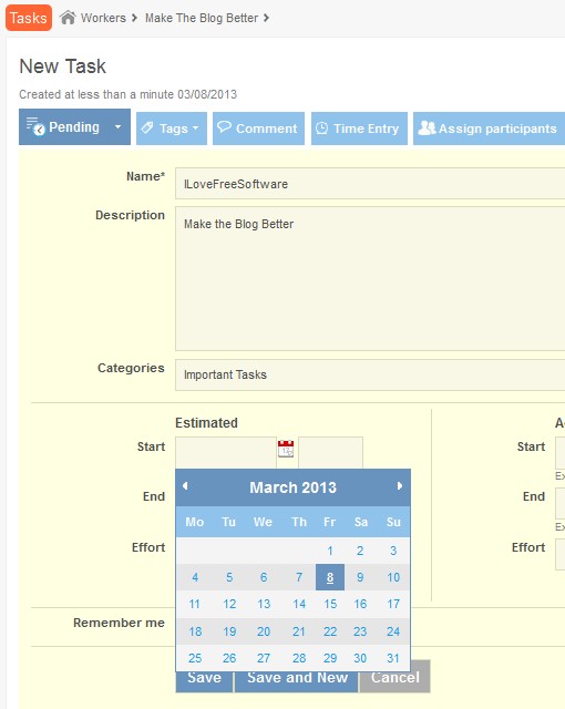 Flip through the blue tabs at the top to assign different aspects of the task, basic information like what needs to be done, comments, when is it expected to be completed, who needs to work on it and so on. When you’re done, click Save and task will become active inside the selected Project.