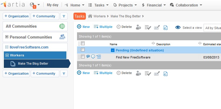 Artia is a free online project management service. It’s web based, so you can access it using your web browser from pretty much every operating system. Apps for Android, iOS and iPad are available with the help of which you can stay on top of your business even when you’re on the go, provided that you have Internet access. All the standard features that you’d expect from project management service are available, task assignments, team collaboration, file sharing and so on.