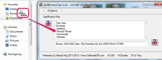 GetWindowText is a very simple application that allows users to copy text from any window. The most important thing about this application is that it is helpful to get those text contents that you can’t copy paste, like an error message, name in title bar, navigation pane items, or a Windows pop up message. So instead of writing a text (that you can’t copy) manually on Notepad or in other text editor software, you can quickly grab that text using GetWindowText.