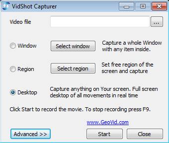 As you can see from the image above, this is a rather simplistic application with a pretty basic control panel. There aren’t that many options available and the entire setup you need to go through in order to start recording the desktop consists of two steps. With the help of the Advanced button down below additional settings can be opened.