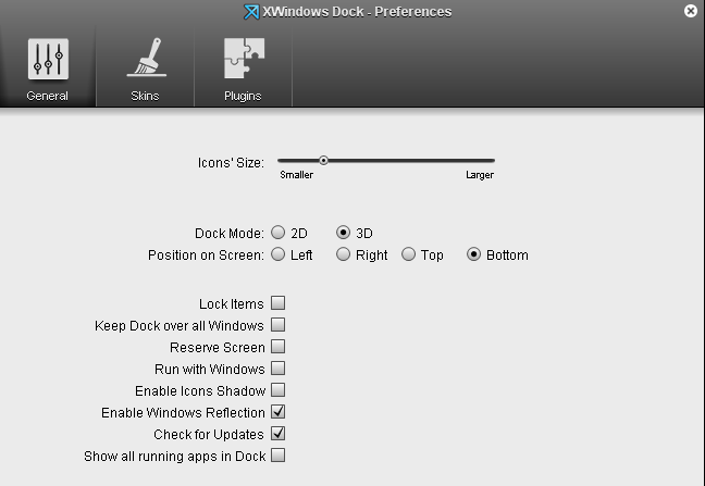In the general tab you have the option to check and uncheck for changing the look and presence of the launcher on your screen. For example you may change the radio button to 3D to have a 3D look to the launcher. There are of course much more to change and set the way this software runs from here.