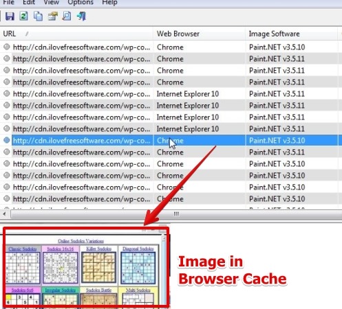 WebCacheImageInfo is a free software to find all the images of JPEG format in your web browser cache memory. WebCacheImageInfo can search for all the images in browser cache for different web browsers. WebCacheImageInfo can search for images in Internet Explorer, SeaMonkey, Firefox, and Google Chrome web browser cache memory.