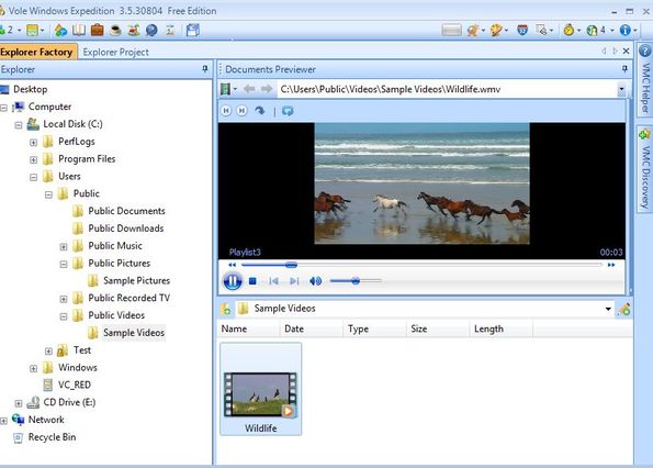 Vole Windows Expedition is a free file management software for Windows which comes with a built in previewer for a lot of different formats. Videos, audio and even text documents can be opened and viewed from inside Windows Expedition. With this file manager you can easily browse files on your computer, organize them and like we already mentioned, you can also play videos, songs, open text documents and even browse the web using a built-in web browser.