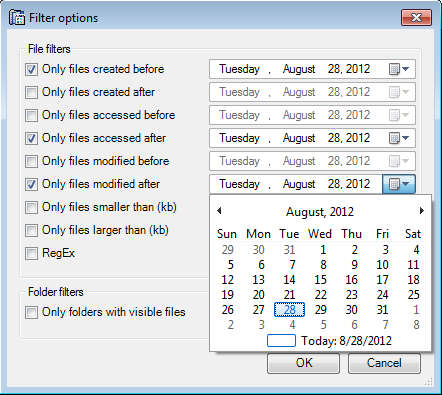 Files can be easily filtered out based on the dates that they were created, accessed, modified or their size, which makes it easier to find files and folders important for you.
