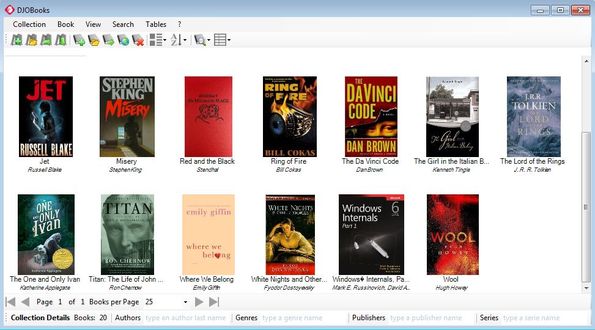 eBook collection that you decide to manage with DJOBooks is gonna be listed in the middle of the interface. This portable ebook management software comes loaded with example ebooks, which can be seen on the image down below. Note that these are not actual ebooks, they are just database entries, you don’t get free ebooks with DJOBooks, this is just an ebook manager.