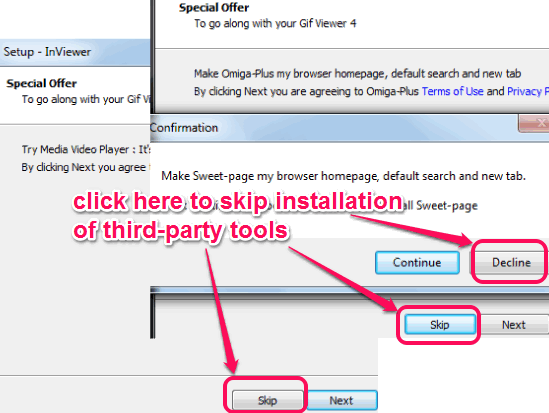 You can download this freeware using the download link placed at the end of this review. Setup file is only 589 KB in size. But be very careful while installing this software as installation process is full with third-party tools. You need to use Skip button multiple times to get rid of third-party tools. See the below screenshot:
