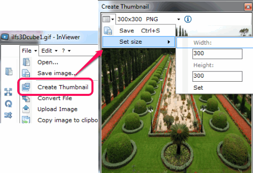 • You can resize an image to generate thumbnail or any other size of image. You need to manually enter width and height for resizing the image. Access Create Thumbnail option present in file menu and then you can set image size.