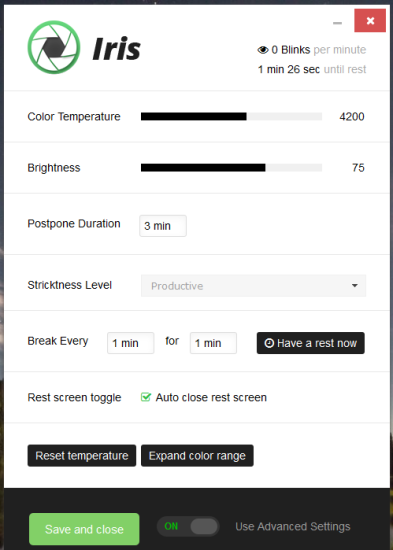 Iris is a fantastic eye protection software. Multiple handy features have made it one of my favorite software of this category. You must protect your precious eyes and this software can help you do so.