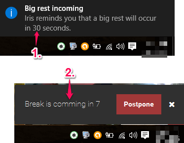 - Pop up notification is also provided before the rest time. Moreover, it also provides option to postpone the break if not necessary.
