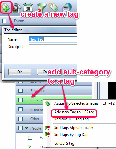 Now you have to organize photos by adding photos to tags. For this, select multiple photos, and use context menu. You will find preset tags, such as: Events, Favorites, Imported tag, Other, People (contains friends and family as sub-tags). Click on any tag and selected photos will be added to those tags.