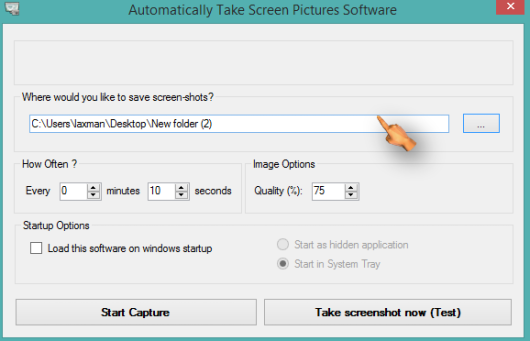 Auto Screenshot Capture is also a good software. This software also lets you set the number of screenshots to be captured automatically in a particular time duration. So if you have activated this software to capture screenshots regularly after every 10 seconds, then you can enable it to capture 2 or 3 screenshots. Once the set number of screenshots are captured, automatic screenshot capture process will stop.
