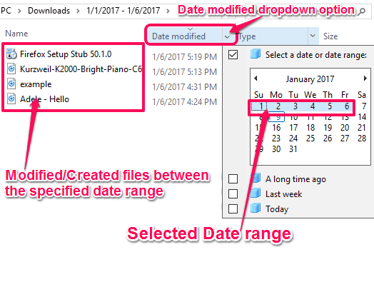Use Date Modified Option In File Explorer to Find Files Created Between Specific Date and Time:
