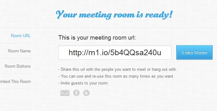 The only thing that you need to do is copy the link that you’re given with people that you’d like to see in the video chat session. By flipping through the options on the left additional tweaks can be made, write down room name, and find out the embed codes for both to Join meeting and the entire chat room for your website.