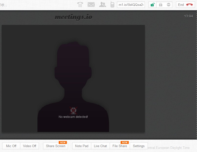 Interface of a video chat room created with Meeting can be seen below. If it’s just you in the chat room, then only one window that you’re gonna see will be yours, and for every new contact that decides to join, another window in the center of the meeting room interface is gonna show up. Down below you can see various different buttons for opening up notepads, file sharing and most importantly screen sharing, all of which are available for free. Some of the options are still being worked on like conference calls and SMS invitations.