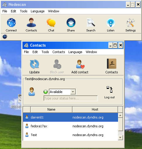 Nodescan is a complete instant messaging system where you get, for free, both the server and client applications with support for a wide selection of communicational aids, like file transfer for example. What this means is that with Nodescan you can create you own instant messaging protocol, completely independent of any other similar services like MSN, Yahoo or Skype. Instant messaging isn’t the only thing that Nodescan can do, it also comes with support for: