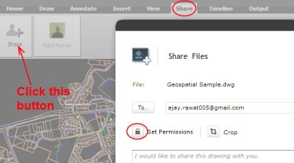 - Just next to View option, you will find Share option. Hit this Share option to share a selected drawing to desired people. After hitting this option, you need to click on the given Share button. A pop up will open up just after this. Here, you need to provide the email address of desired person(s).