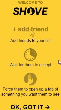 Shove is a Chrome extension which allows you to forcibly open a page in your friends web browser. Its like sharing links with friends, but with this extension you can force the link to open in your friends web browser. So you can be sure that your friend saw what you sent and did not ignore it. With emails or messages you never know if your friend saw the link you sent or not. But, using Shove you can be sure that all the links you share are seen by your friends.
