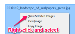 You can select images as you select text in a web page. After selecting all the broken images that you want to reload, right-click and select the option “Show Selected Images”. Then all the selected images will be reloaded without reloading the entire web page. This option is useful if you want to reload only the selected broken images, instead of all the broken images.