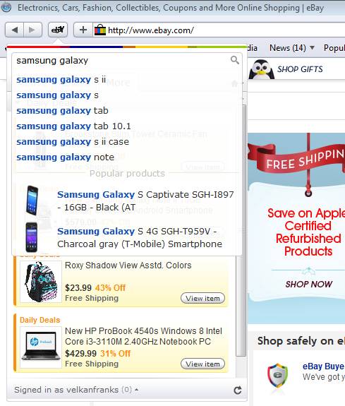 Internet Explorer version of this eBay add-on will add an entire new interface to the browser, and it’s available for the Internet Explorer 9. If you’re using older version you’re gonna have to upgrade. Notice that there’s an eBay taskbar item down below. To add it there and activate the custom eBay IE interface which can be seen above, you’re gonna have to click and drag the website icon of eBay to the taskbar. That will add the eBay icon to your task bar that you can use to quickly access your account.