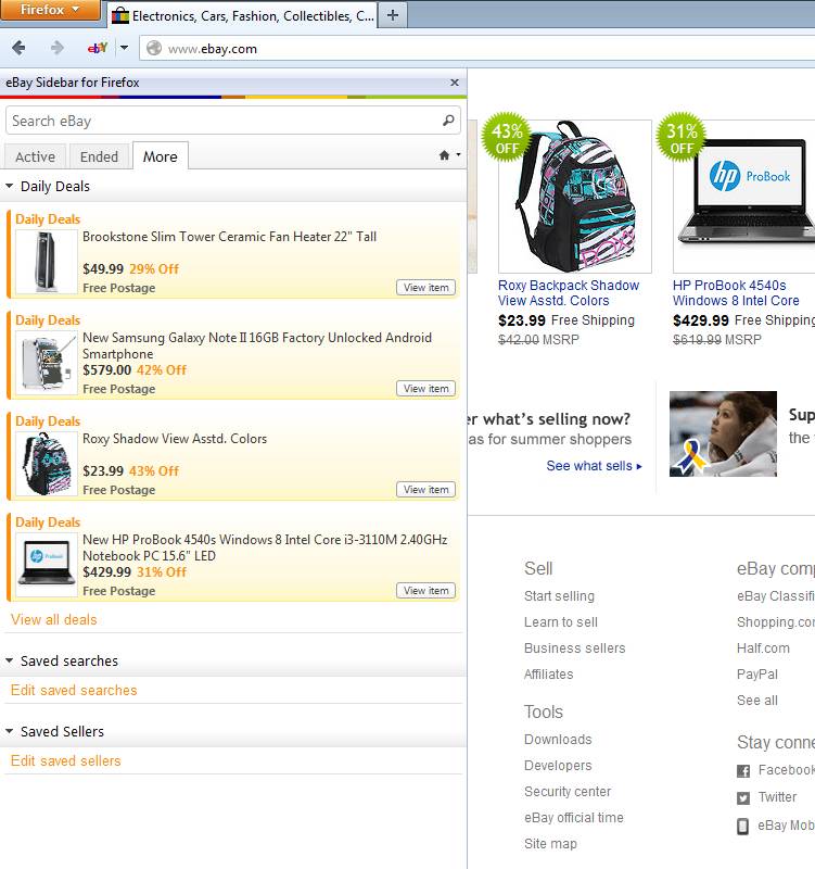 This is where you’ll be able to check on if there are any kind of updates available for your eBay account. Updates will come for messages as well as if someone out-bids you on eBay. For better chances of figuring out something’s up, open up the Active tab and track updates there. Installation is easy and after restart the sidebar should be there.