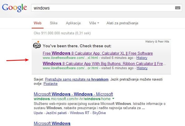 Like we said, other search engines are also supported when it comes to incorporating web browsing history results from this free web browsing history manager. To see these suggestions, simply open up your search engine, type in a search term and look for the “You’ve been there” suggestion box from Peerbelt.