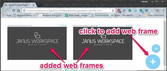 Janus Workspace is a very useful Chrome extension which can assist you to open multiple websites in one tab by splitting the screen into web frames. Personally, I like this extension as it can be used to open as many websites as you want in one single Chrome tab. That means no more opening different tabs for browsing multiple websites in Google Chrome.