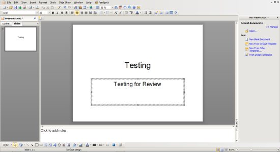 I’ve been using PowerPoint to create automated slideshows for years. So, I thought that using Kingsoft Presentation was going to be easy. Create a number of slides as a slideshow, add a little music to it and viola! Instant automatically running slideshow. The problem is, that didn’t happen. I spent over 30 minutes playing with the program and looking through the help files, but I wasn’t able to find any information on how to create a self-running presentation or slideshow. All of the options were there as in PowerPoint, but none of the various slideshows I made ran by themself after opening them. They opened directly into PowerPoint. In order to view the presentations I had created as a full screen slideshow, I had to start the slideshow from within Kingsoft Presentation or PowerPoint.