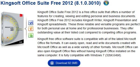 Kingsoft Office Suite 2012 is a free alternative to MS Office. Kingsoft Office Suite 2012 Free is a piece of free software that contains the three most commonly used Office applications; a writing product, a presentation creator, and a spreadsheet creator. If you’re familiar with Microsoft Word, Excel, and PowerPoint, you will be able to make use of most of the features of Kingsoft Office Suite 2012.