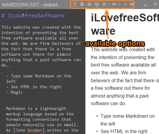 Here comes a feature rich Markdown editor software, named as Markdown Edit. It has dozens of interesting features that make writing the Markdown code fun and interesting. The most important feature that I think is the live preview. So you can see the output in real-time.
