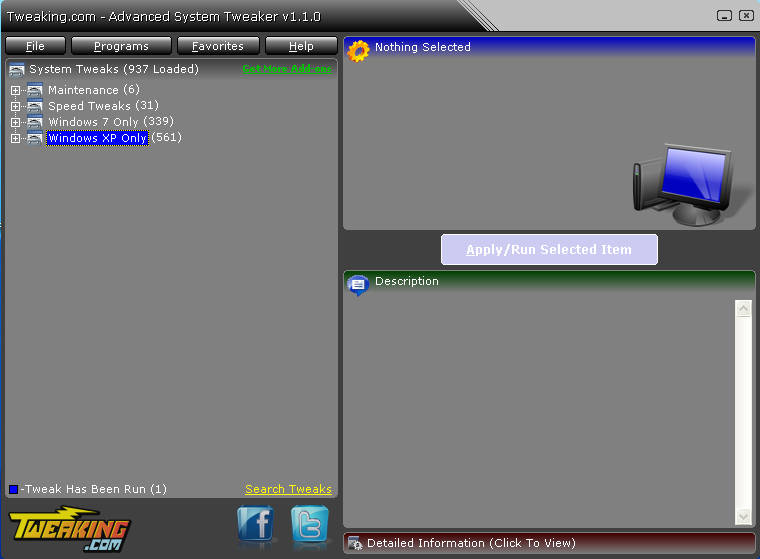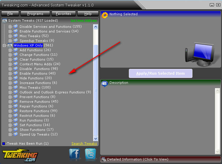 Windows XP has a lot more options offered for tweaking, perhaps because it’s older, or maybe it’s easier to tweak Windows XP, who knows, but here are some of the more interesting categories: