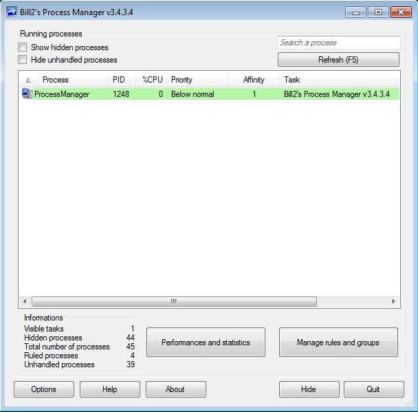 Bill2’s Process Manager offers a lot of advanced features, when it comes to process and task management, and next to them you get a decent amount of basic features like stopping processes, managing frozen programs, statistics, and so on. It’s very fast and lightweight. Note that by default, website and this free software are in French, and French isn’t your language, then you’re gonna have to change it. Download it free.