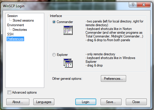 In the Environment tab, you can adjust timestamp settings for the file transfer synchronization. The server environment and Directory options could be controlled as well! The SSH tab is one of the most critical one. Protocol and Encryption options, both can be controlled easily. Preferences lets you choose the type of interface, either Commander or Explorer type.