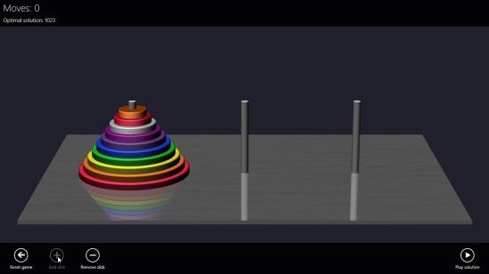 Play tower of Hanoi using this Windows 8 puzzle game app: