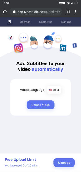 Click on that option to access the page of the mobile version of typestudio.co. Alternatively, you can directly click here to visit the web page of Mobile Auto Subtitles on your mobile. Sign in using your Type Studio ID if you have been using the service before, or Sign up.