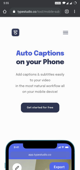 For this, you can visit the website of Type Studio on your phone’s browser by either typing it in the search bar or simply clicking here. On the homepage, scroll down to the bottom where you will find the option of “Mobile Auto Subtitles”.