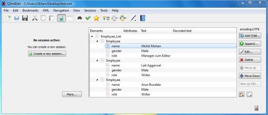 QXmlEdit is another free XML editor which lets you easily Edit XML documents. It allows you to view, navigate, and modify XML data and gives you full freedom to adapt it to your need. QXmlEdit XML Editor is a technical tool designed primarily for software developers. You need to have strong command on XML in order to use this free XML Editor. QXmlEdit XML Editor is intended to handle small XML files. It’s a nice editing tool which provides different views to display XML documents, allowing you to examine XML data from different point of views.