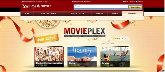 Yahoo MoviePlex is another platform where you would get a variety of Hindi movies online. MoviePlex allows you to watch Hindi movies online in HD quality, free of cost with your family. This site offers you full length movies for free. Features are not that distinctive from YouTube. This yahoo service allows you to browse a movie fast,watch movies with no more ad linking and aspect ratios.