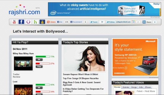 Rajshri is a website where you can discover and watch Hindi movies online for free. This site includes a wide variety of old, mid and recently released movies. You can experience a Cinema theatre like feeling if you watch a movie on this site because of its amazing video quality. This site hosts the movies through YouTube so whenever you click a movie it is played in YouTube. Thousands of short videos are available for viewing and sharing among a growing YouTube community.