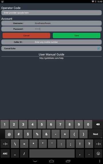 Once you run Gold Dialer for the first time, you’re going to be asked to setup your account, including adding a username and password. Gold Dialer is a VOIP app, and it’s going to ask you your account info each time the app is accessed. Contact manager is included with the dialer app.